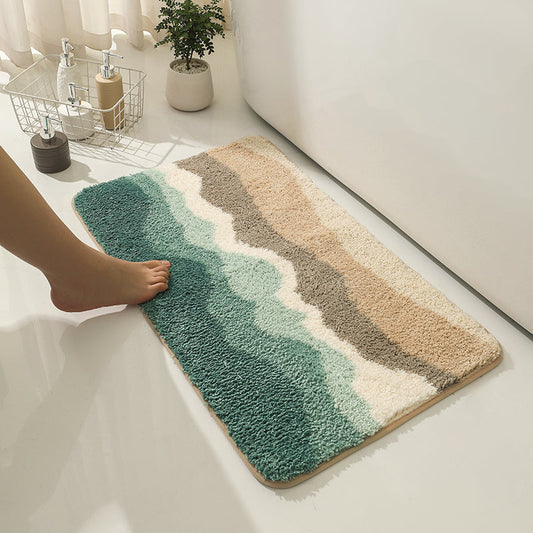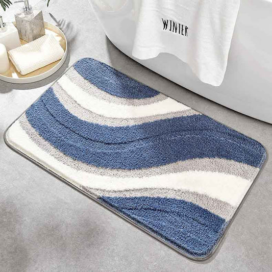 Abstract Blue Wave Ocean Bath Mat Green Mountain Rug
