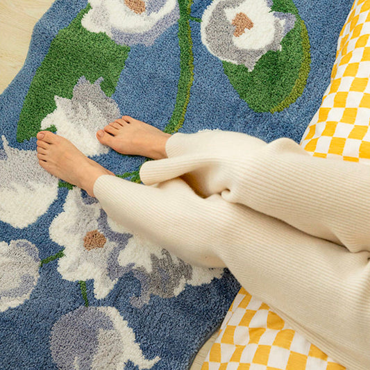 White Daisy Green and Blue Ground Bedroom Mat
