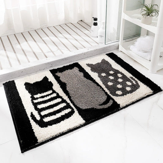 Three Cats Bathroom Rug, Non-Slip and Washable