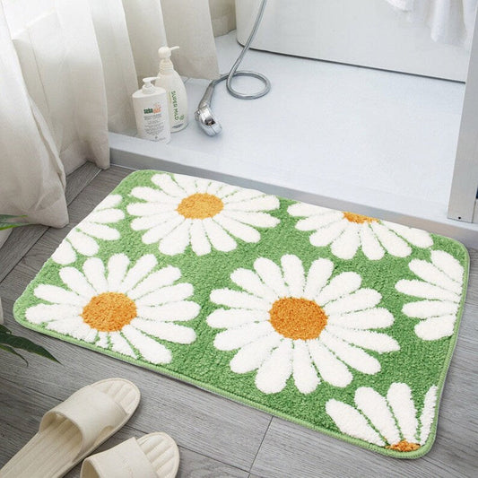 Cute Green Daisy Bath Mat